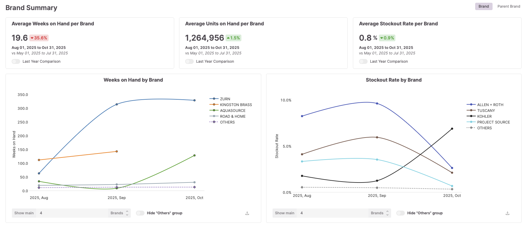 Trend inventory levels over time for specific items or groups of items to easily visualize the overall health of the supply chain for your category.