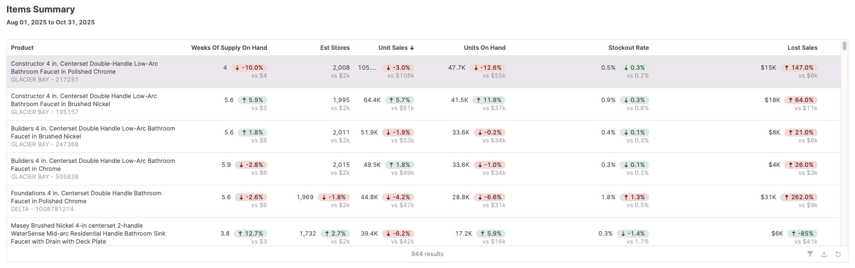 Use the Supply Gaps dashboard to find item and brand level opportunities in your category and level up your partnership with retailers having a hard time keeping competitive items in stock by filling those gaps with inventory you have on hand.